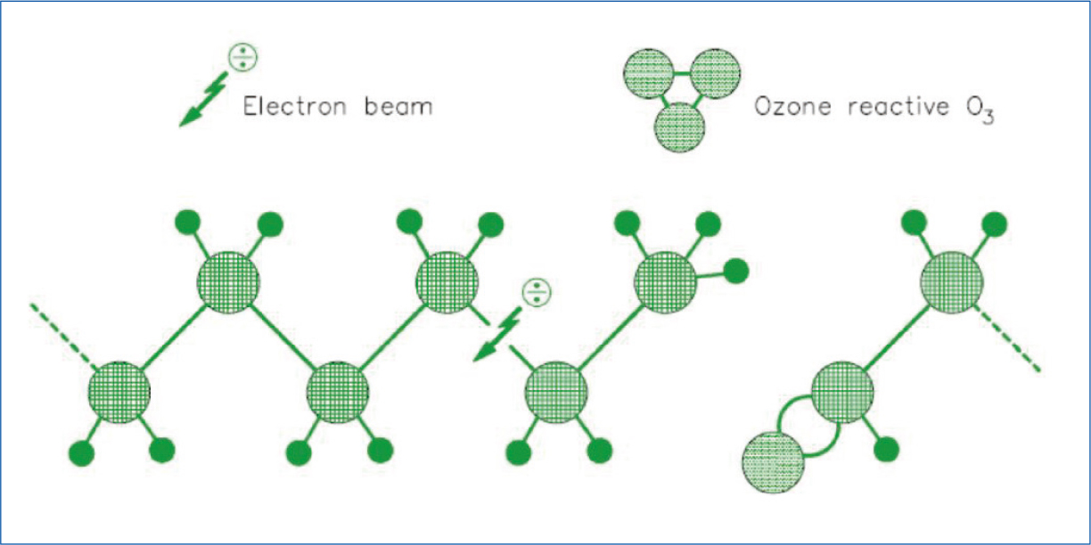 根据以上描述,感觉电晕处理似乎是一个物理冲击过程;早先经常有一个朴素的解释:电晕后薄膜会变得粗糙,所以印刷时油墨有了抓取的锚点,附着力增强。实际上这个说法只反映了部分事实,更关键的原因是薄膜表面有大量氧原子(臭氧)的嵌入,导致薄膜表面的表层物质类型发生了变化,如图1所示。