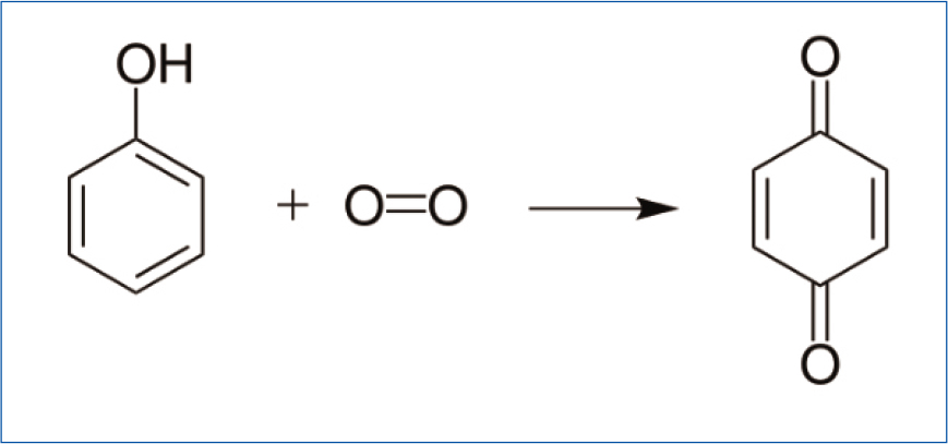 如图20所示,酚基团遇到氧化物质时变化为有色的醌,醌是一个不太稳定的结构,如果碰到热或者光照,还会还原回去;所以如果不惜工本,一些黄变的印刷品晒晒太阳可能还可以挽救。