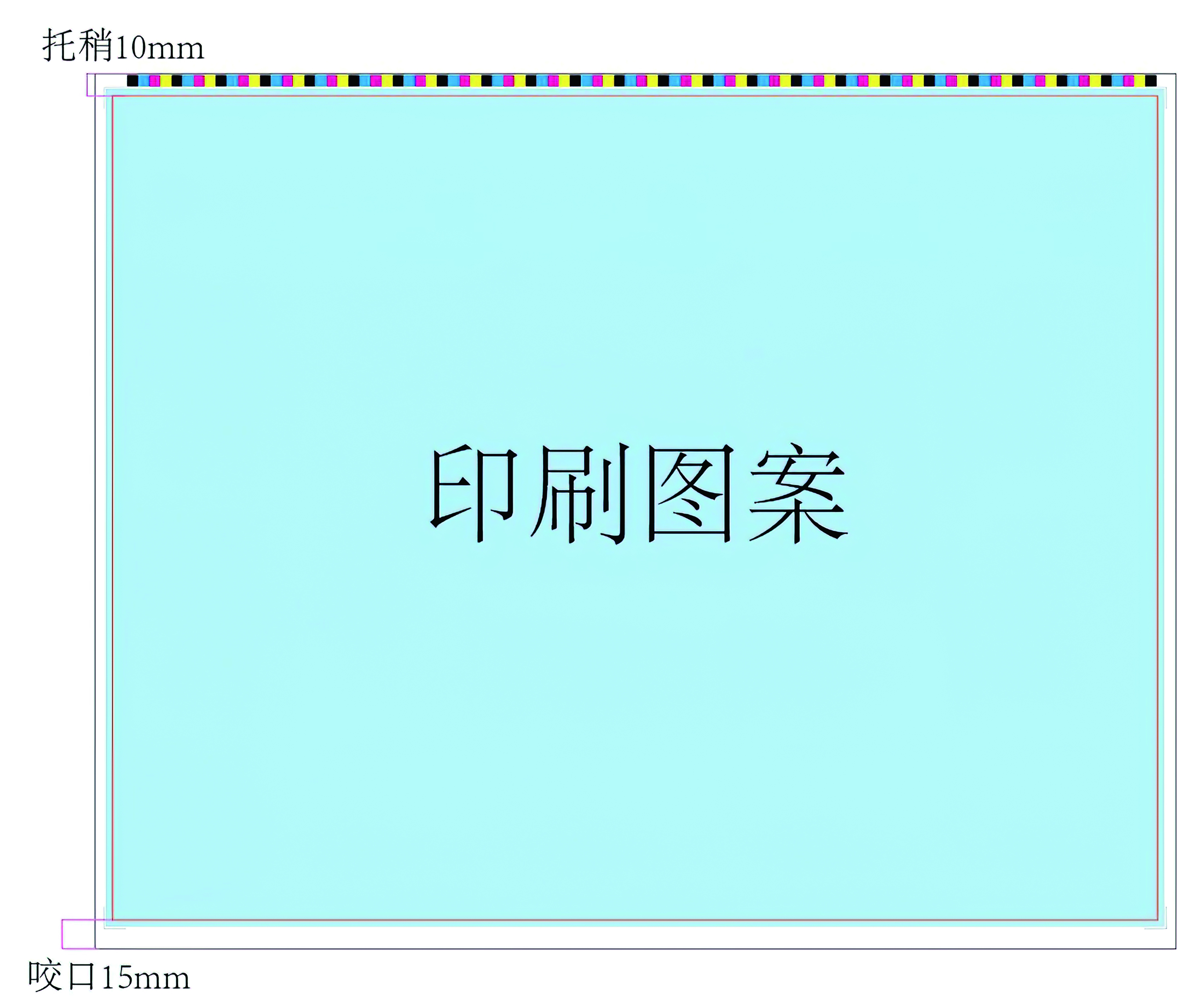 胶印是平张印刷,如图1所示,需要预留咬口,正常情况下咬口宽度需要15mm;另外还需要托稍,宽度也要10mm以上,这些都是材料的无谓浪费。而柔印使用的是卷状材料,是不需要咬口和托稍的,这节约的是设计损耗。
